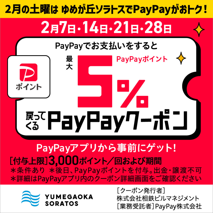 2月の土曜はゆめが丘ソラトスでPayPayがおトク!